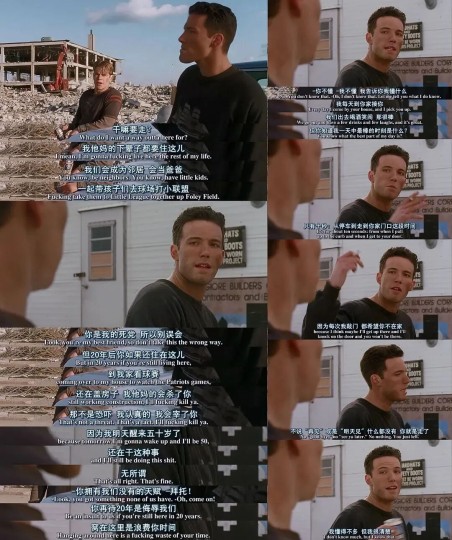 有一段主角间情绪爆发的台词让我印象深刻,那是sean对叛逆男主will说的一段话,直击他最强大脑下的空无一物: